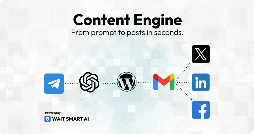 Our Content Engine workflow automates the creation of engaging content for your newsletter, blog, and social media platforms such as Facebook, LinkedIn, and X (Twitter) at a fraction of the cost of a content manager. By streamlining the content generation process, it enables you to produce high-quality, platform-specific content in seconds. This efficiency not only saves valuable time but also ensures consistency and relevance across all your communication channels.